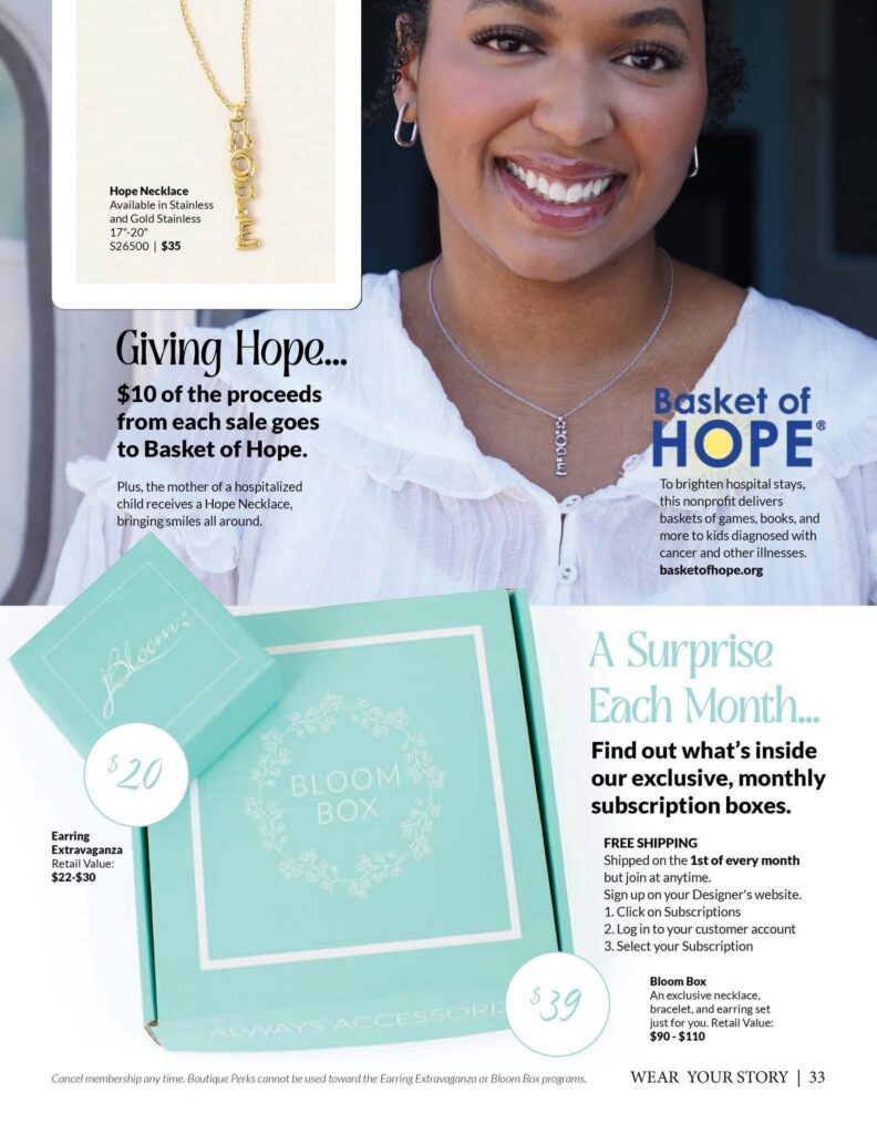 Each HOPE necklace purchased donates $10 to Basket of Hope®, a nonprofit that brings baskets filled with games, books, and goodies to children facing serious illness—plus a special HOPE necklace for their moms. It’s a beautiful way to share strength and encouragement.