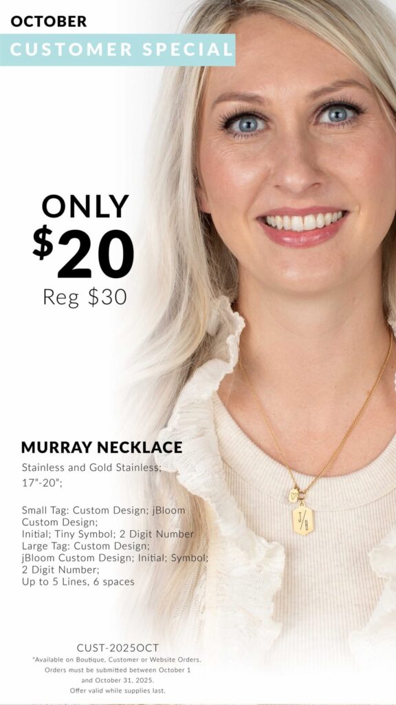 It’s the season of sparkle AND savings! For October, treat yourself or someone you love to the beautifully versatile Murray Necklace for only $20.